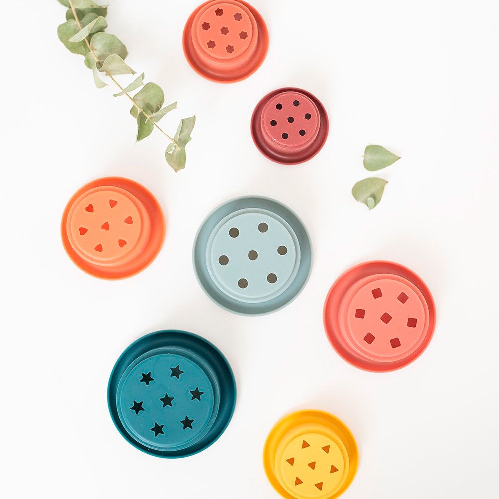 Psicomotricidad y diversión segura para los peques. Juguete para motivar desde una edad muy temprana, recomendado para + de 4 meses. Compuesto por 6 piezas de colores agradables para ir reconociendo distintos tamaños. Pueden morderlos, chuparlos y lanzarlos sin peligro ya que están fabricados con silicona aprobada por LFGB. Son suaves, flexibles y duraderos, estimula el desarrollo intelectual y la coordinación para reconocer formas.