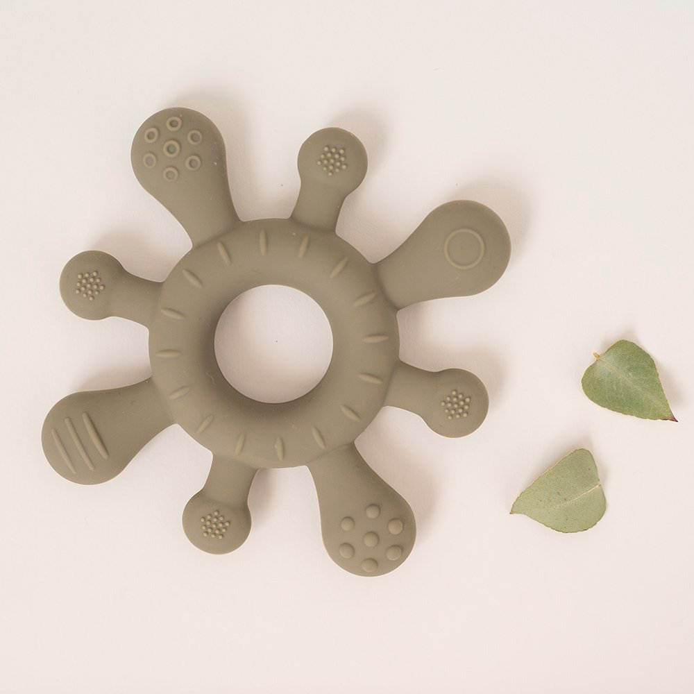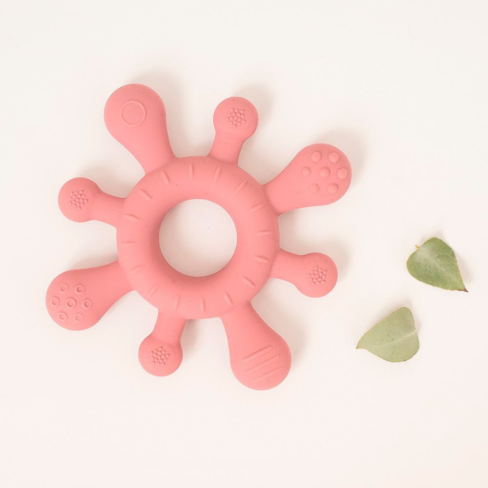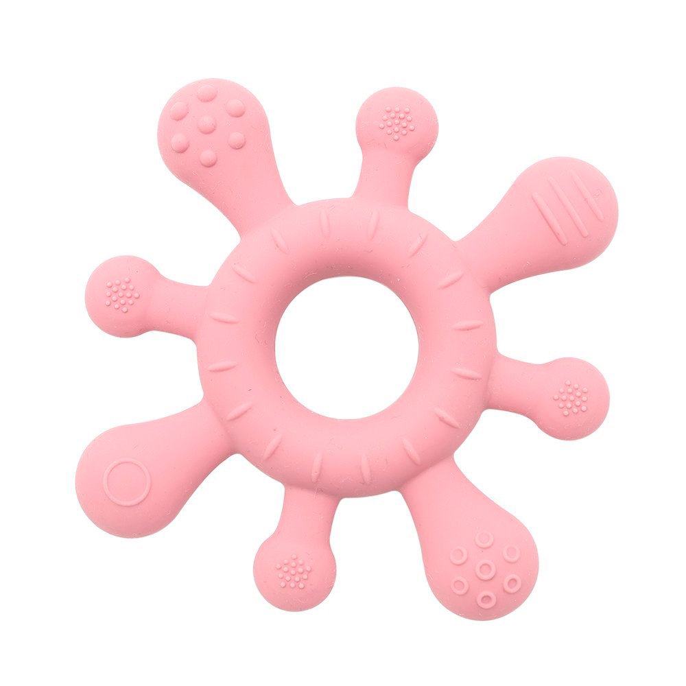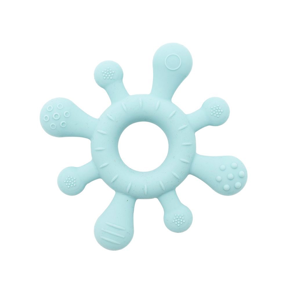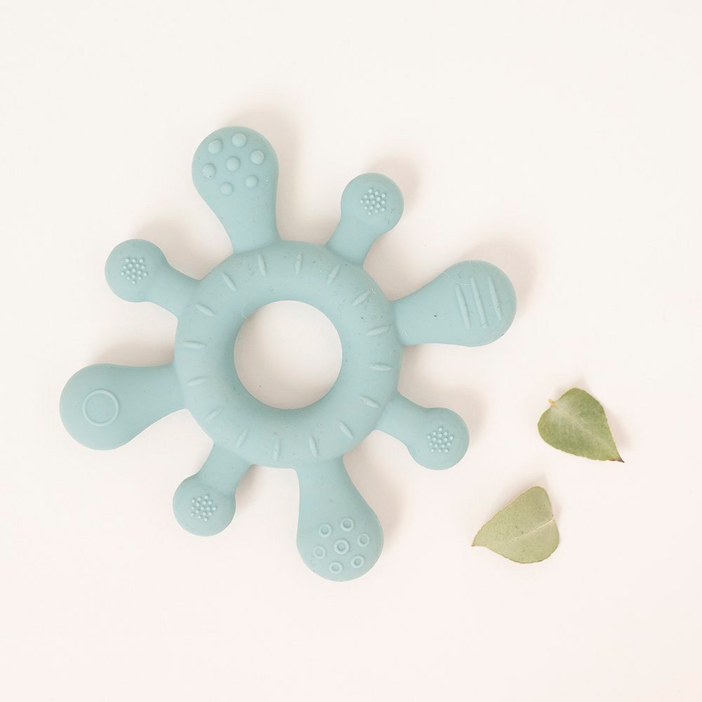 El periodo de dentición del bebé es uno de los más dolorosos e inquietantes, ayuda a tu bebé con este mordedor de diferentes texturas que además favorece el agarre y la motricidad fina.