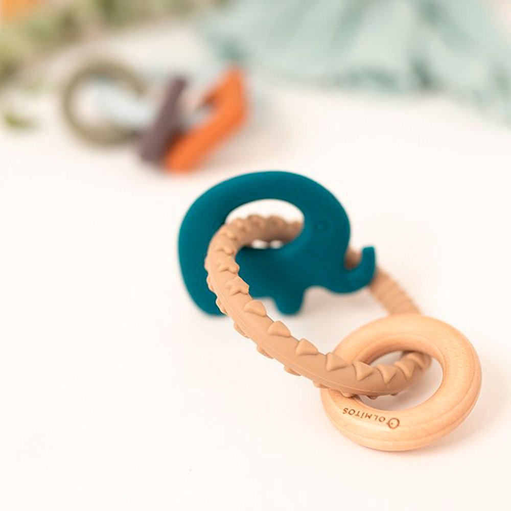 El mordedor de silicona que combina con madera de haya ayuda a que el bebé reconozca diferentes texturas y favorece la aceptación de todo tipo de alimentos durante la alimentación complementaria. Además empieza a reconocer las figuras de animales. El periodo de dentición del bebé es uno de los más dolorosos e inquietantes, ayuda a tu bebé con este mordedor de diferentes texturas que además favorece el agarre y la motricidad fina.